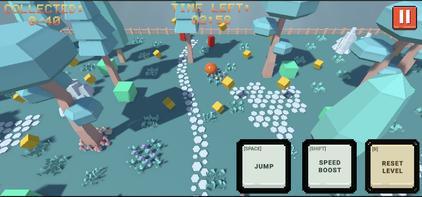 A souped-up Roll-A-Ball prototype with jump, double jump, and speed boost— plus enemy chase AI, and a countdown timer. Collect every PickUp before the time (or your lives) run out.
